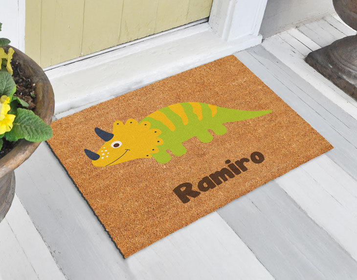 Los retornos a casa tras un duro día de trabajo o clases pueden ser cansados y aburridos. Puede que nuestros cuerpos no puedan más y estén deseandito llegar a casa para ponerse su buen Netflix, tumbarse en el sofá, y procrastinar todo lo posible sin pensar en ninguna de tus obligaciones. ¿Acaso puede existir un mejor sentimiento que el de llegar a casa después de una jornada intensa? Evidentemente no. Puede que en casa seáis unos fanáticos de los dinosaurios. Hemos podido ver a estas históricas criaturas en multitud de obras y lugares, convirtiéndose casi en cultura popular. ¿Quién no tiene un dinosaurio favorito? Si en casa siempre os estáis peleando por saber cuál es el dinosaurio más guay de todos, tenemos el regalo perfecto para ese hogar: el felpudo personalizado Familia Dinosaurios. Es indiferente si eres más del Tyrannosaurus Rex, del Velociraptor o del Triceratops. Todas estas criaturas son majestuosas, y podrás escoger a la que más te guste para dar la bienvenida a tus invitados. ¡Ponle tu nombre a uno de estos dinosaurios y forma tu propia familia del período Triásico gracias a este regalo original. ¡Tenemos más de 75 personajes con nombre! Importante: nuestro equipo de personalización se encargará de ajustar la distribución de los personajes en el producto en función de su tamaño para que se vean lo mejor posible. Tienes que tener en cuenta que este felpudo tiene fines decorativos, no es un producto de alto tránsito. Por tanto, si lo expones a condiciones climatológicas adversas o tiene un uso intenso su durabilidad puede reducirse. Importante: Son felpudos de fibra de coco natural, por tanto pueden tener variaciones de color. Además, los detalles pueden no ser tan perceptibles como en una pantalla retroiluminada.