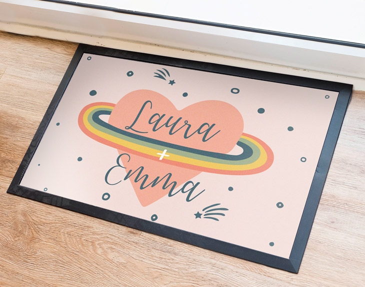 El amor no tiene límites y nosotros queremos celebrarlo. ¿Te apuntas? Hemos diseñado este felpudo personalizado para las parejas más divertidas y tiernas del mundo. Solo necesitamos vuestros nombres para fabricar un felpudo exclusivo. Es un regalo original perfecto si os vais a ir juntas o juntos a vivir. Todos los invitados a casa se quedarán helados con el felpudo... ¡Triunfaréis! Dale rienda suelta al amor y celébralo con nosotros. Durabilidad: 1 año. Material: goma y microfibra.