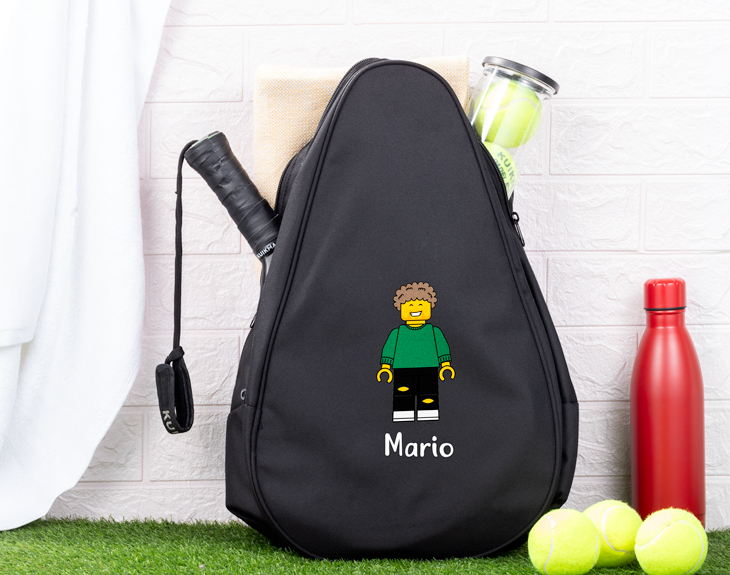 ¿El pádel es tu deporte favorito? Si te encanta y disfrutas un montón practicándolo, esta funda para raquetas “Familia Lego” es algo que no te puede faltar. Gracias a esta funda podrás guardar tu raqueta y transportarla de un lado para otro bien protegida. Además, tiene dos compartimentos grandes para guardar una o dos raquetas, o incluso el bote pelotas. ¡Todo lo necesario para jugar al pádel! También cuenta con un pequeño bolsillo interno y unas asas ajustables estilo mochila para que lleves la funda colgada. ¿Lo mejor? Esta funda es personalizable. Esto quiere decir que tú eres quien diseña a estos personajes Lego como tú quieras. Hay un montón de accesorios y rasgos diferentes para elegir, seguro que consigues que estos se te parezcan. ¡Tendrás tu propio personaje Lego! También se puede convertir en un regalo de lo más original para tu compañero de pádel, le hará muchísima ilusión. ¡Juntos seréis imparables! Personalizar esta funda para raquetas es súper sencillo. El primer paso a seguir consiste en añadir el producto al carrito y entrar al área de personalización. Una vez ahí, podrás diseñar a tus avatares desde cero, ¡ya verás qué divertido! Pronto quedará perfecto y listo para regalar. Un regalo para deportistas y fans de Lego. Medidas: 48,5 x 29 x 16 cm.