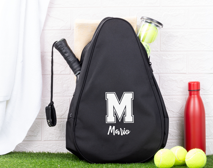 Si hay un deporte que se ha puesto muy de moda es el pádel. Aunque es ideal para mantenerse en forma y ejercitar todo el cuerpo. para practicarlo solo necesitas muchas ganas, una raqueta y nuestra funda para tu equipo de pádel personalizada. Es ideal para llevar todas tus cosas bien guardadas y organizadas cada vez que vayas a un entrenamiento o partido. ¡Es lo más! Esta original bolsa es genial tanto para uno mismo como para regalar a tu fiel compañero de pádel que no se pierde un torneo. Es cómoda, muy práctica y te ayudará a mantener tu raqueta siempre apunto, evitando que pueda romperse. ¡Un regalo de lo más guay! Esta funda de color negro cuenta con dos bolsillos grandes, en los que podrás guardar tanto una como dos raquetas, las pelotas o lo que quieras. Además cuenta con un pequeño bolsillo interno y unas asas ajustables estilo mochila para que lleves esta funda colgada. ¡Lo tiene todo! Lo único que tienes que hacer es personalizar esta bolsa para que sea única. Añade el producto al carrito y entra en el área de personalización. Elige tu inicial de nuestra familia 'Alfabeto College', completa el diseño con el nombre y listo. ¡Tendrás la mejor bolsa del mundo! Medidas: 48,5 x 29 x 16 cm.