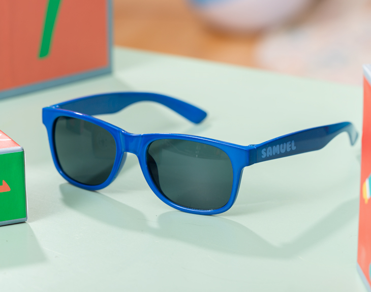 • Gafas de sol infantiles personalizadas. • Tarjeta recordatoria.