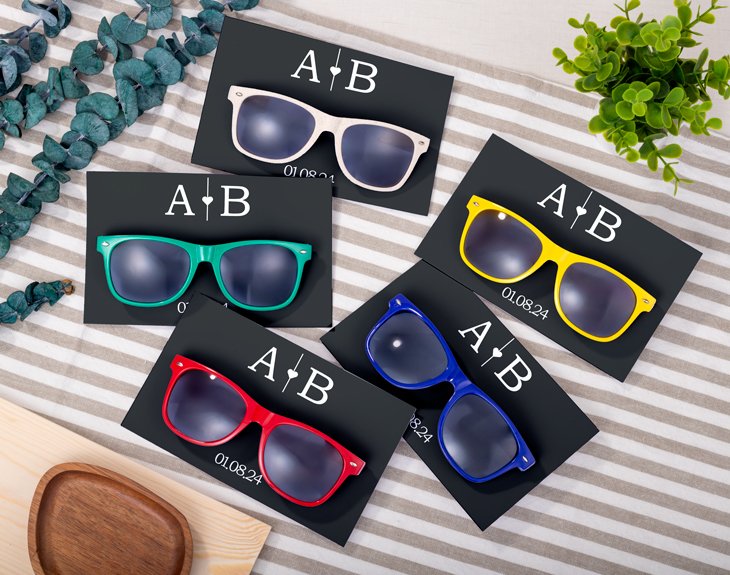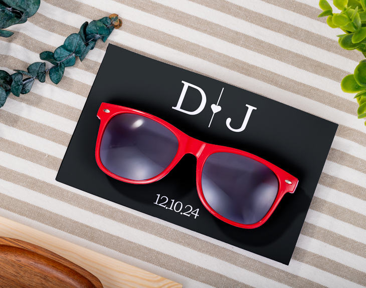 • Tarjeta personalizada. • Gafas de sol. • Tarjeta recordatoria.