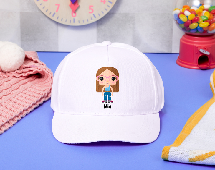 • Gorra blanca infantil personalizada. • Tarjeta recordatoria.
