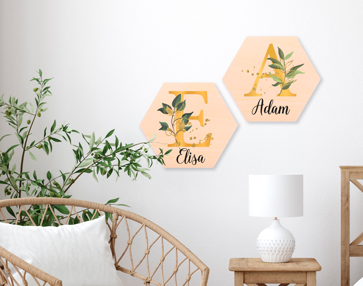 Tanto las casas modernas como las más clásicas tienen sus propios carteles de madera con los nombres de las personas de ese hogar. ¡Es la mejor manera de identificar a vuestra familia! Y qué mejor manera de hacerlo que con nuestra familia de iniciales botánicas. Esas preciosas letras doradas silvestres con el nombre escrito en una estilosa tipografía llenarán todo tu pack de hexágonos de madera personalizados con diseño. ¡Cada uno con su propia inicial y texto! Puedes crear un diseño conjunto entre todos como formando una palabra letra a letra o escribir el nombre de tus padres, tus hermanos o tus hijos en cada bloque de madera con forma hexagonal personalizado. Sea como sea, tu diseño se imprimirá con suficiente cantidad de tinta para destacar sobre esta madera de excelente calidad cortada y lijada para un acabado tan formal como original. ¡Y todo ello apenas te llevará cinco minutos! Estás a tan solo unos clics de crear el más sorprendente regalo original de decoración para el hogar. Sorprende a esa pareja de amigos que se acaban de mudar con estas piezas de madera personalizadas listas para colgar: todas ellas incluyen un pequeño agujero de 8 milímetros de diámetro en la parte posterior. ¡Son los ideales carteles identificativos de hogar para las puertas, los armarios o las paredes! Medidas de cada hexágono: 24,5x21x2cm. Importante: Las maderas tienen vetas y estas quedan reflejadas en la impresión.