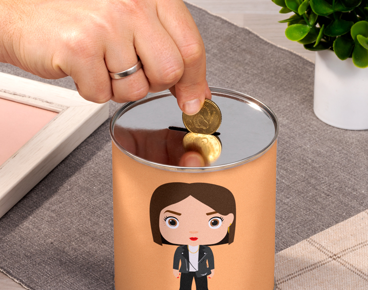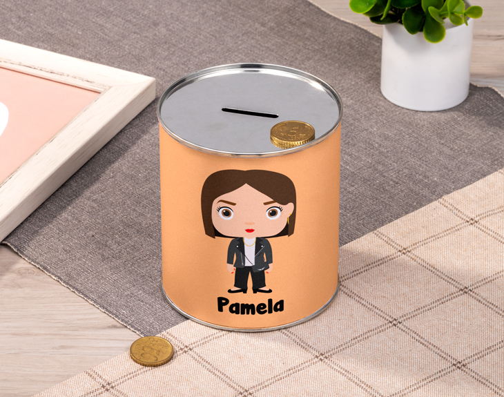 Para ahorrar bien, tienes que tener siempre en mente el objetivo a conseguir. ¿Con quién te gustaría ir de viaje? ¿A quiénes te gustaría invitar a cenar? Piensa en todas esas personas especiales y tenlas a la vista de una manera muy divertida sobre tu hucha de lata personalizada con nombres. Podrás tener tu familia o grupo de amigos juntos con esta increíble variedad de personajes cabezones. ¡Con todos los tipos, tamaños y vestimentas! Si es para alguien friki que necesita dinero para ir al cine, podrás poner su nombre sobre nuestros monigotes de Harry Potter o con gafas 3D. Si tus padres están deseando irse a la playa, conviértelos en unos divertidos personajes surferos o con flotadores. Puedes convertir esta hucha de lata en el regalo original ideal para cualquier tipo de personalidad. ¡Con hasta 8 personajes diferentes entre los más de 500 disponibles! Para que tengas tu hucha redonda de metal totalmente diseñada a tu gusto, podrás escoger también el color de fondo entre cuatro distintos y muy luminosos: azul, rosa, naranja y verde. Y por muy poco más, ¡podrás llevarte otra más por menos precio! Medidas: -32 cm de circunferencia -10 cm de diámetro -11,5 cm de altura Material: metal Importante: a partir de 6 personajes. se colocarán en dos filas. Es decir: - Familia de 6 personajes: 3 en la fila superior, y 3 en la inferior. - Familia de 7 personajes: 4 en la fila superior, y 3 en la inferior. - Familia de 8 personajes: 4 en la fila superior, y 4 en la inferior. Importante: esta hucha no está preparada para abrirse frecuentemente. Una vez abierta no se puede volver a cerrar.