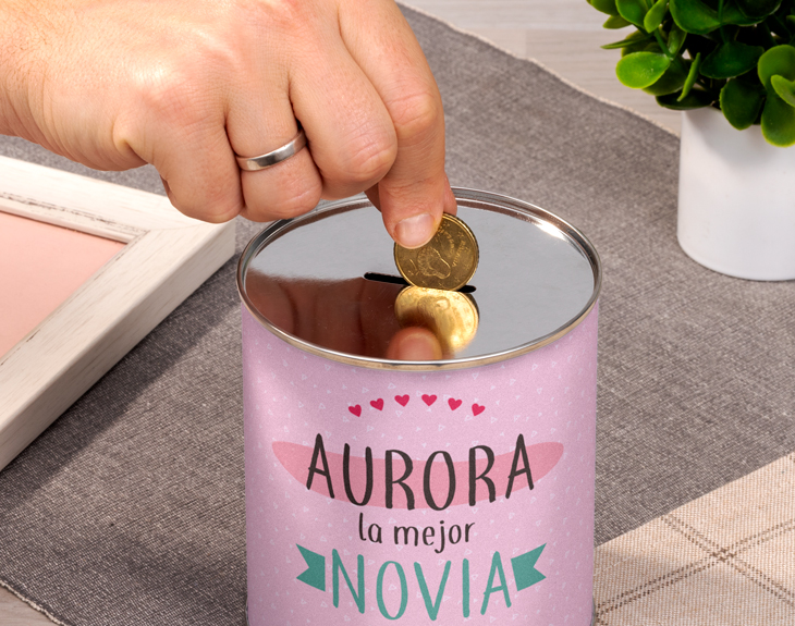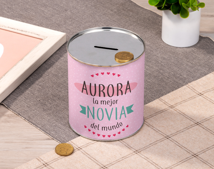 Tener novia no es barato. ¡Pero merece la pena cada euro invertido en esta relación! Sabemos que supondrá un esfuerzo el hecho de tener que preparar planes, comidas, regalos... Por ello, queremos ayudaros a crear todos esos momentos especiales juntos con esta hucha de lata personalizada con nombres. Aquí podrás guardar todo vuestro dinero e ilusiones a la vez que le dices a tu pareja que es la mejor novia del mundo. Puede que ahora mismo no puedas regalarle algo muy grande, ¡pero sí puedes regalarle la promesa de poder comprarle lo que quiera! Este diseño personalizado con rosa hará de esta lata un precioso regalo original para parejas y tu aliciente diario para ahorrar. Escribe el nombre de tu chica y sorpréndela con estos corazones. Le encantará tanto que lo tendrá siempre a la vista y no os costará nada ahorrar día a día. Gracias a sus pequeñas dimensiones, podrás colocar esta hucha redonda de metal en cualquier sitio para apreciar su diseño personalizado a todo color y tamaño impreso alrededor de toda la lata. Medidas: -32 cm de circunferencia -10 cm de diámetro -11,5 cm de altura Material: metal Importante: esta hucha no está preparada para abrirse frecuentemente. Una vez abierta no se puede volver a cerrar.