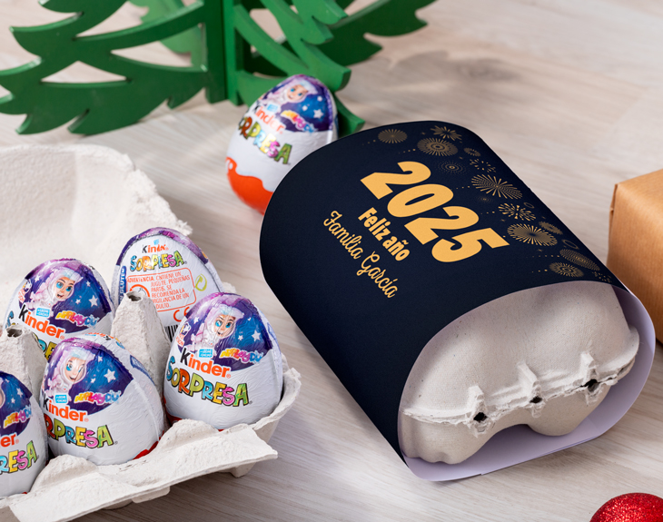 ¡No queda nada para celebrar el Año Nuevo! Si quieres tener un detalle con tus seres queridos y felicitarlos de una manera más dulce, nuestra huevera personalizada con un diseño "Fiesta Nochevieja" es justo lo que necesitas. Sin dudas, es un original regalo ideal para esta ocasión. ¡Endulza la Nochevieja de tus familiares y amigos! Esta huevera es completamente personalizable, lo que significa que podrás escribir el nombre y un texto breve que quedará genial junto al diseño festivo de este nuevo año. Dentro de la caja podrás encontrar... ¡6 Huevos Kinder, a quien lo reciba le encantará! Personalizar esta huevera es muy sencillo. Primero, añade el producto al carrito y entra al área de personalización. Allí podrás escribir el nombre y el texto que prefieras. Pronto lo tendremos listo para regalar. ¡Sorprenderás con un regalo dulce y original! Medida: 18 cm x 12 cm