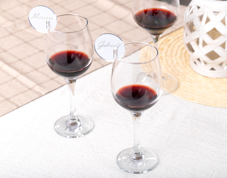 Si quieres darle un toque único y elegante a la decoración de tu boda, tenemos la solución. Nuestros identificadores de copas personalizados son el detalle que estás buscando. Los invitados podrán identificar fácilmente su copa durante toda la fiesta, ¡les encantará! Además, también puedes usarlos para señalar los lugares en las mesas. ¡Quedarán estupendos! Estos identificadores de copa están hechos de metacrilato, y lo mejor de todo es que son personalizables. Podrás añadir el nombre que desees. Será un detalle encantador para tus invitados, que luego podrán conservarlo como un recuerdo especial del gran que compartieron contigo y tu pareja. Personalizar estos identificadores de copas para bodas es muy fácil. Añade la cantidad que necesites al carrito y entra al área de personalización. Una vez allí, escribe el nombre que quieras y, ¡listo! Nosotros nos encargaremos de que estos delicados identificadores estén listos para el día de tu boda. Medidas: 5 x 5 cm.