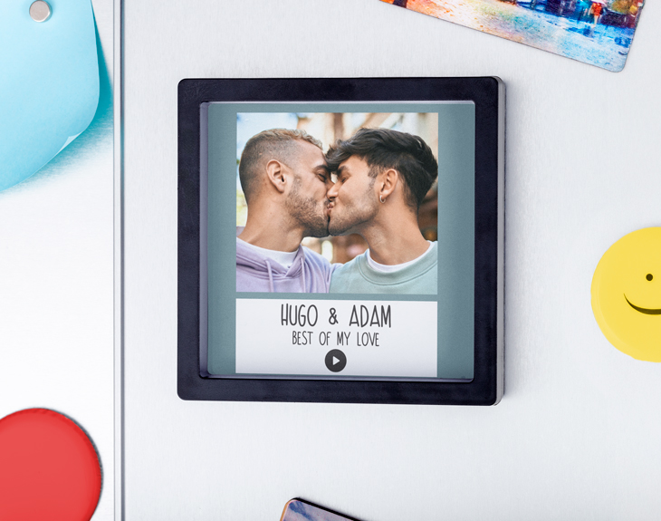 ¿Qué pasa si decidimos mezclar recuerdos con música? Pues que tenemos como resultado el mejor regalo del mundo: ¡este divertido imán personalizado! Y como habrás visto, no es el típico imán que ponemos en la nevera y ya está. No no, este imán tiene un reproductor al que podrás añadir el audio que tú quieras. ¡Es genial para sorprender a alguien! Olvídate de los típicos y aburridos regalos y deja sin palabras a alguien con este original imán que seguro que no tendrá nadie. Si quieres darle un toque único a tu nevera o sorprender a esa pareja o amigo que se acaba de mudar a su nueva casa, esto es todo lo que necesitas. Con un detalle así, vas a triunfar en cualquier ocasión, te damos nuestra palabra. Y si quieres que este regalo sea mucho más especial, puedes añadir una caja personalizada con el mismo diseño. Dentro encontrarás el imán reproductor. Y no te preocupes porque para personalizar este imán solo tienes que seguir unos pasos muy sencillos. Entra en nuestro diseñador, añade el audio (mensaje de voz o canción en archivo MP3) y personaliza nuestro diseño 'Polaroid' totalmente a tu gusto para que sea súper especial. Ya solo falta disfrutar de este imán cuando lo recibas y descubrir qué mensaje te han dejado. ¡Será súper guay! Medidas del imán: 10,9 x 10,9 cm. Medidas de la caja: 13,5 x 12,5 x 3 cm. Cómo reproducir el audio: para poder reproducir el audio, solo tienes que presionar el lugar exacto que te indicamos en la imagen del producto. Importante: Estos imanes reproductores son recargables. Su batería, situada en la parte trasera, te permite conectar un cable USB de tipo C.