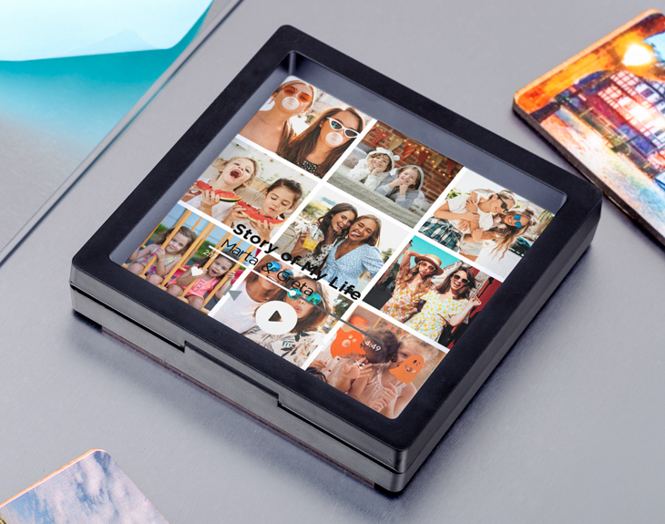 ¿Te imaginas ponerle banda sonora a tus recuerdos? ¡Sería como vivir en una película! Con nuestro imán reproductor personalizable, ahora puedes hacerlo realidad. Y es que nuestro imán no es un simple adorno para decorar tu nevera, ¡es un reproductor de música! Elige tu foto favorita, añade la canción que mejor capture ese momento especial y dale al Play para vivir esta experiencia. ¡Podrás personalizarlo como tú quieras! Sin duda, este imán musical se puede convertir en un original regalo, ya sea para tu pareja, compi de piso o familia. ¡Le encantará! Es perfecto para cualquier ocasión como aniversarios, San Valentín, Navidad, cumpleaños o incluso para bodas. ¡Será un recuerdo inolvidable! El último paso que tienes que completar es personalizar este imán con audio. Es muy fácil. Entra en nuestro diseñador y sigue los pasos. Primera, añade tu foto favorita junto con el texto que quieras. Después, te dejaremos un apartado para insertar el audio en el que podrás añadir desde un mensaje de voz hasta un archivo MP3 con esa canción que tanto te gusta. ¡Es todo un regalazo! Medidas: 10,9 x 10,9 cm. Cómo reproducir el audio: para poder reproducir el audio, solo tienes que presionar el lugar exacto que te indicamos en la imagen del producto. Importante: Estos imanes reproductores son recargables. Su batería, situada en la parte trasera, te permite conectar un cable USB de tipo C.