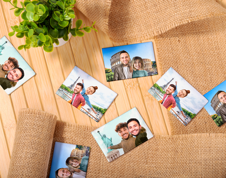¿Te gustaría imaginar un viaje a París, Roma o Nueva York? Este imán personalizado, resistente y decorativo para la nevera, te ayudará a hacer realidad ese pequeño gran sueño. Podrás elegir el diseño de tu ciudad favorita, añadir la cara que más te guste, la tuya o la de quien tú quieras y listo. Tendrás un recuerdo precioso de ese viaje soñado y maravilloso. Es un adorno para nevera muy pintoresco y original, y con sus caritas quedará genial. Seguro que a tus visitas les encantará tanto como a ti. Y quién sabe, quizá a esa persona le guste tanto el diseño que acabe organizando el viaje de verdad. Dale una oportunidad a la magia y crea tu imán con la ciudad que más te inspire. Este imán rectangular es duradero y perfecto para decorar tu nevera con estilo y personalidad. ¡Querrás coleccionarlos todos! Personalizarlo es súper fácil: solo tienes que añadir el imán al carrito y acceder al área de personalización. Desde allí podrás ver una vista previa del diseño y subir la foto que prefieras. Consejo útil: al hacer clic en “Editar” sobre la imagen principal, puedes eliminar el fondo de la foto para que la cara quede perfectamente recortada y encaje a la perfección en el diseño. ¡Quedará estupendo! Medidas: 6 x 9 cm.
