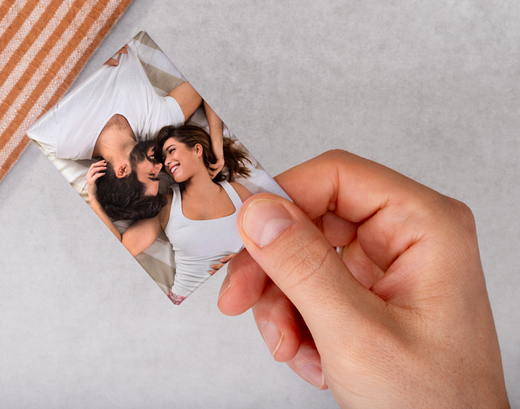 Las vacaciones inolvidables de este año puede que no se vuelvan a repetir, pero siempre te quedará su maravilloso recuerdo y todos los detalles que trajiste de vuelta, incluidas las fotos. Si tienes una foto que siempre llevarás en el corazón, trasládala a uno de nuestros imanes de metacrilato rectangulares personalizados y, cada vez que vayas a tu cocina, te llevará de vuelta a esos momentos geniales. Este modelo de imán se fabrica en metacrilato, un tipo de plástico muy resistente y ligero que imita la apariencia del vidrio (pero por suerte sin replicar su fragilidad). El producto lo preparamos adhiriendo la fotografía que nos hagas llegar al metacrilato y añadiendo una pieza de imán para que puedas colocarlo en tu nevera o en tu rincón favorito de la casa. Para poder diseñarlo, contarás con una plantilla rectangular con la forma del imán en la que colocar tu foto. Puede ser una imagen vertical u horizontal, tú escoges luego la colocación del imán en casa, pero lo que sí recomendamos es que la fotografía tenga buena calidad y luminosidad, ya que así se consiguen los resultados más bonitos y llamativos. ¡El resultado es uno de los regalos más originales del mundo! Este detalle será un puntazo para sorprender a una persona especial en su cumpleaños o para emocionar a tu pareja en vuestro aniversario. Los imanes también son perfectos como recordatorio de boda, bautizo o comunión . Sea cuál sea la ocasión, es difícil fallar cuando el regalo te lleva a momentos preciosos y especiales. ¡Todos se emocionarán! Medidas: 6 x 9 cm