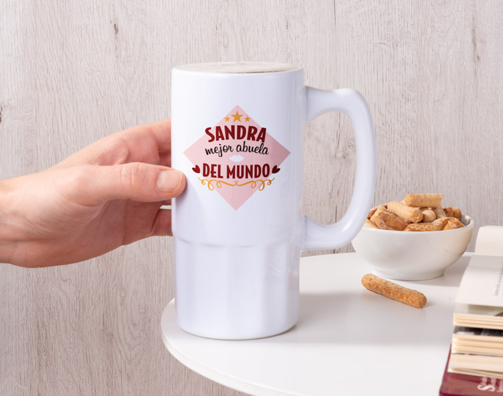 ¿Tienes a la abuela más enrollada del mundo?¿Es el mejor ejemplo de trabajo, fuerza, humildad y alegría?¡Entonces esta jarra personalizada tiene su nombre! Y es que, si es el pilar fundamental de vuestra familia, esta jarra de cerveza personalizada está hecha para ella. Un regalo original perfecto para demostrarle que sin sus historias, sus consejos y su cariño nada sería lo mismo. Porque si hay alguien capaz de hacer que todo sea mucho más fácil y de que todos los males se vayan con una simple sonrisa o un abrazo, esa es ella. Si tu abuela parece estar en la flor de la vida y tiene más espíritu de juventud que todos vosotros juntos, le encantará disfrutar de una cervecita con sus hijos y nietos. ¡Seguro que le parece el mejor plan del mundo!