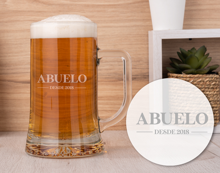 Si tienes un yayo que disfruta de tomar su cerveza acompañada de unos ricos embutidos, tenemos el regalo perfecto: nuestra ¡jarra de cerveza personalizada! Gracias a su diseño "Abuelo desde...", podrás personalizarla con la fecha en que tu ser querido se convirtió en el mejor abuelo de todos. ¿Te imaginas la cara que pondrá al verla?