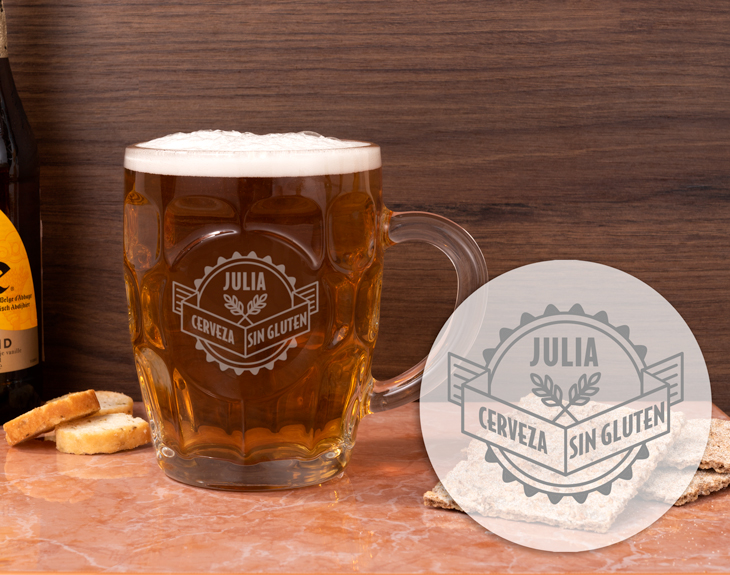 Cada vez se detectan más y más casos de celiaquía, de hecho seguro que tú también conoces a alguien que le han diagnosticado recientemente esta intolerancia. Dejar de comer trigo es un rollo, pero el drama real llega con la cebada. Si esa persona adoraba la cerveza y ahora ha tenido que pasarse a la sin gluten, esta jarra de cerveza bávara tiene su nombre. Y es que, aunque parecía que el mundo se iba a acabar, descubrió la cerveza sin gluten y todo volvió a tener sentido. Por eso, si quieres hacerle un regalo muy original y divertido, esta jarra es la opción perfecta. Solamente necesitamos que nos digas su nombre para insertarlo en el diseño y se morirá de la risa al ver esta super jarra...¡Le hará muchísima ilusión! Medidas: • 12,5 alto • 9,5 diámetro • 14cm de ancho incluyendo asa