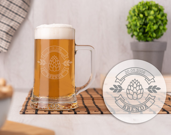 Ya nadie va a beberse tu cerveza favorita con esta jarra personaliza con un diseño original en el que incluye tu nombre. Idea genial para reuniones de amigos o fiestas familiares, ¡ya nadie se confundirá de jarra! Con esta jarra de cristal tu cerveza mantendrá su sabor inconfundible hasta en el último trago. Capacidad: - Jarra: 500 ml - Mini jarra: 250 ml