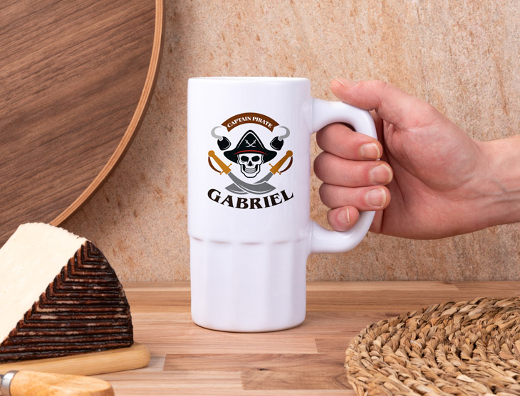 Te encanta salir a beber cerveza, cantar y divertirte. Eres un disfrutón o una disfrutona y tu lema es ‘la vida pirata la vida mejor’. Si cumples estas características estás hecho o hecha toda una pirata. Te traemos esta jarra de cerveza de cerámica personaliza para que disfrutes aún más de tus momentos más cerveceros, pues una persona como tú no puede beber de cualquier jarra su bebida favorita. Este diseño tan pirata no puede describirte mejor. Nosotros ya estamos listos para grabar tu nombre y llevártela a casa. ¿A qué es una idea genial?