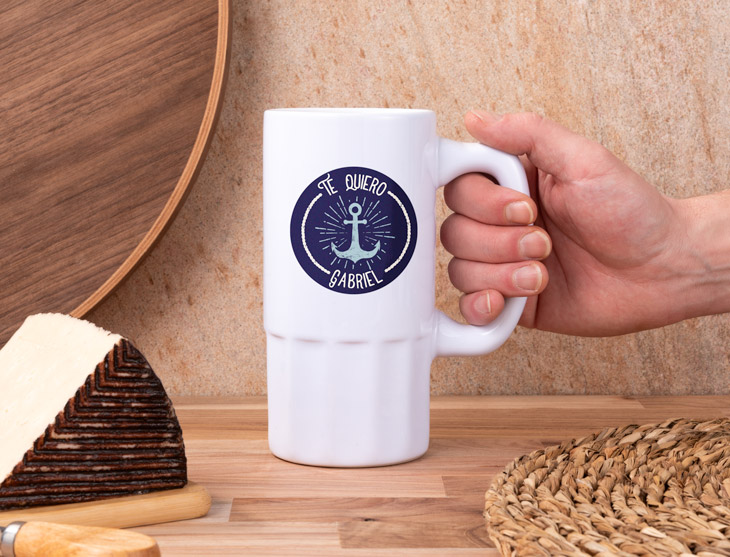 Nada mejor que estar en la orilla de la playa tumbado o tumbada en la arena con una cervecita en la mano, escuchando el bonito sonido del romper de las olas, disfrutando el aroma a salitre y compartiendo el tiempo con esa persona especial… Si esta es tu cita ideal, aquí tienes algo que no te debe faltar. Te traemos una jarra de cerveza de cerámica personalizada con un precioso diseño que nos leva a la calma que transmite el mar acompañado con un mensaje de ‘te quiero’ para que se entere que vuestro amor está bien anclado. No esperes más, dinos su nombre o el tuyo y enseguida tendrás tu jarra personalizada.