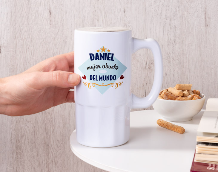 Un gran maestro, el mejor ejemplo a seguir, quien es como un segundo padre, quien te cuida y te quiere como nadie lo hace, es él, tu abuelo. Os encanta pasar tiempo juntos acompañados de una buena cerveza fresquita y por eso, traemos este regalo tan original. Esta jarra de cerveza de cerámica personalizada con un mensaje tan bonito que tu abuelo se emocionará al verlo. Demuéstrale todo lo que le quieres y hazle saber lo importante que es para ti con este detalle único. Dinos su nombre para hacerle sentir todavía más especial y demuéstrale cada día lo único que es para ti.