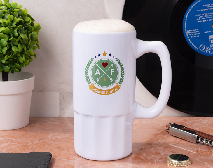 Os queréis mucho, compartís un montón de momentos acompañados de buena cerveza y no podéis vivir sin estar juntos o juntas. Tenéis un amor que va a durar toda la vida y lo sabéis porque os cuidáis como no lo hace nadie… Ten un detalle con esa persona especial y regalalé esta jarra de cerveza de cerámica personalizada con este bonito y romántico diseño en el cual puedes grabar vuestras iniciales haciendo así un regalo más auténtico, como vuestro amor. No hace falta que esperes a San Valentín o a vuestro aniversario… ¡El amor se demuestra día a día!