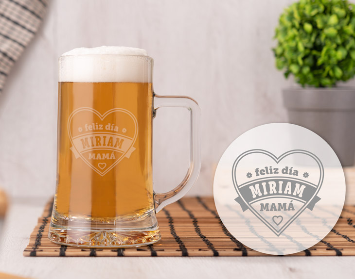 ¿Es tu madre la más cervecera de la casa? Esta jarra de cerveza de cristal personalizada es perfecta para hacer sonreír a la mejor madre del mundo, pero no te olvides de acompañarla con un buen abrazo y un ‘te quiero’. Solo tendrás que decirnos su nombre y nosotros haremos el resto. No te lo pienses más, regálasela, le va a encantar y va a ser la envidia de todas las reuniones familiares. Aprovecha su cumpleaños, el Día de la Madre o una ocasión especial para darle una de las mejores sorpresas del mundo. Además, la gran calidad de esta jarra de cerveza tan original y única permite mantener el sabor de su cerveza favorita hasta en el último trago. Capacidad: - Jarra: 500 ml - Mini jarra: 250 ml