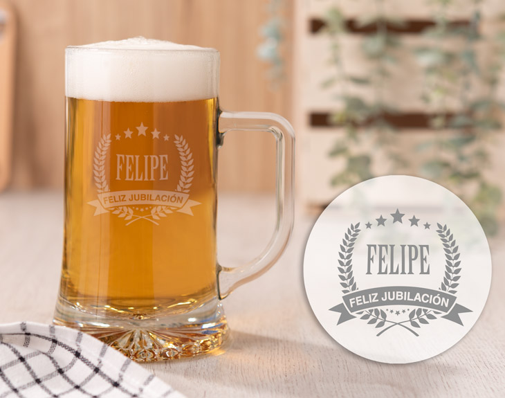 Ese compañero o compañera de trabajo que se despide porque ya ha agotado su tiempo en la empresa y ya se ha ganado descansar… Se merece un buen regalo, ¿no crees? Este es su regalo perfecto para que disfrute de sus momentos de tranquilidad con su cerveza favorita. Ya tienes la idea, ahora dinos su nombre y nosotros haremos el resto. Con esta jarra de cerveza de cristal siempre recordará a su gran equipo de trabajo con una gran sonrisa mientras disfruta de esa jubilación tan esperada. Además, la gran calidad de esta jarra de cerveza tan original y única permite mantener el sabor de su cerveza favorita hasta en el último trago. Capacidad: - Jarra: 500 ml