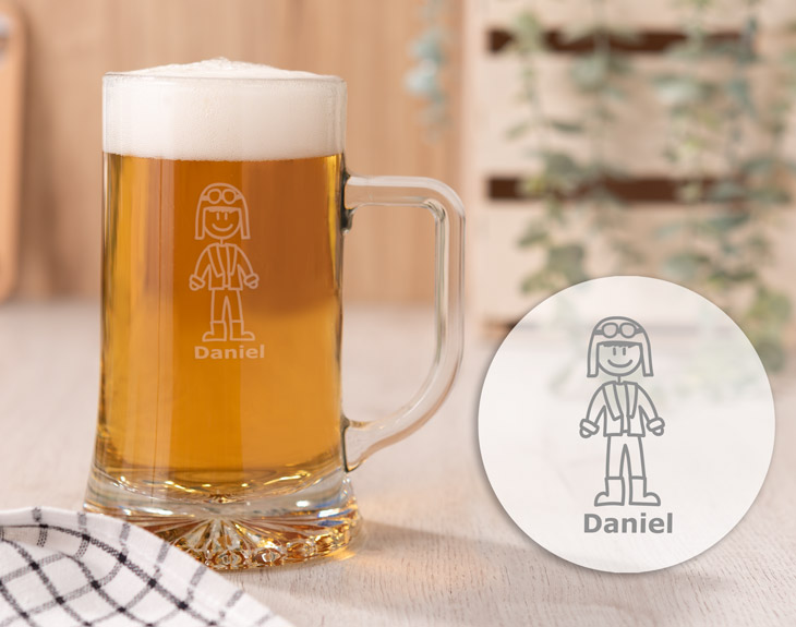 Cuéntanos que te gusta hacer… ¿Fotografía? ¿Cocinar? ¿Jugar al tenis? ¿Nadar? Sea lo que sea lo que te guste hacer, seguro que tenemos un personaje que se adapta a ti y a tu hobby. Creías que era imposible combinar tu actividad favorita con beber cerveza, ¿verdad? Esta jarra de cerveza personalizada es genial para tomar tu cerveza favorita cuando termines tus momentos de ocio, además para que el diseño sea aún más único grabaremos tu nombre. ¡No esperes más! Ya estamos listos para grabar a tu personaje. Diámetro interior: 7cm Medidas aproximadas: 8,5 x 15,5 cm