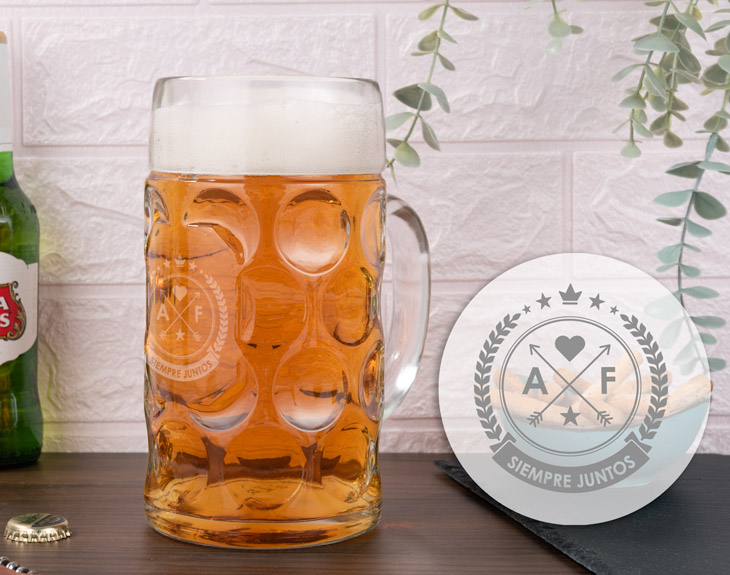 Os proponemos un juego: debéis hacer una lista cada uno o cada una con mínimo veinte razones por las que os enamorasteis mientras que bebéis vuestra cerveza favorita y recordáis viejos tiempos de cuando empezó esta gran aventura. Pero claro, no podéis hacerlo en un vaso cualquiera tiene que ser en esta jarra de cerveza personalizada con capacidad de hasta un litro que ha sido diseñada exclusivamente para parejas como la vuestra. Con vuestras iniciales y un ‘siempre juntos’ terminarás de enamorar a esa persona, si es que puedes enamorarla más…