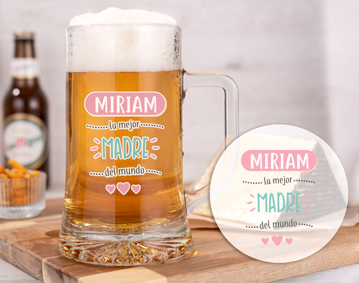 ¿Siempre te llevaba a todas partes de pequeño? ¿Te daba mimos en cualquier momento? ¿Te preparaba tu plato favorito? Entonces este regalo original es ideal para la mujer más importante de tu vida. ¡Añade su nombre a este diseño y sorpréndela con una impresionante jarra de cerveza!