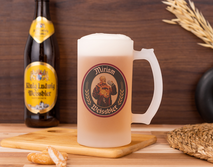 • Jarra de cerveza opaca (capacidad de 50 cl). • Tarjeta recordatoria