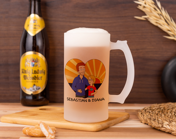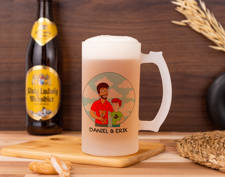 ¿Cuál es la bebida favorita de Homer? Cualquier fan de 'Los Simpson' que se precie de serlo sabe perfectamente que sin tele y sin cerveza Homer pierde la cabeza. ¡Tenemos el producto perfecto para que tu padre tampoco la pierda! Esta jarra personalizada será su recipiente favorito para disfrutar de la mejor cerveza posible. ¡Una jarra opaca como está vendrá de perlas para disfrutar de su cerveza favorita! Con esta jarra con diseño para fans de 'Los Simpson', será como si tu padre estuviera en el mismísimo bar de Moe. Esta jarra está hecha de vidrio esmerilado, por lo que su acabado previene que el sol afecte y caliente esa deliciosa cerveza que papá siempre se toma los fines de semana. Además, cuenta con una capacidad de hasta 500 mililitros. ¡Una jarra única para todos esos padres Simpson! Este regalo original para padres mantendrá su cerveza fresquita sin problema. ¿Cómo podrás crear vuestro propio diseño de padre-hijo/a Simpson? Al añadir el producto al carrito podrás acceder al área de personalización, donde encontrarás todos los elementos que necesitas para crearos a vosotros mismos. Escoge peinados, ropas, rasgos físicos o los accesorios que quieras para este diseño. ¡Seréis como dos habitantes más de Springfield!