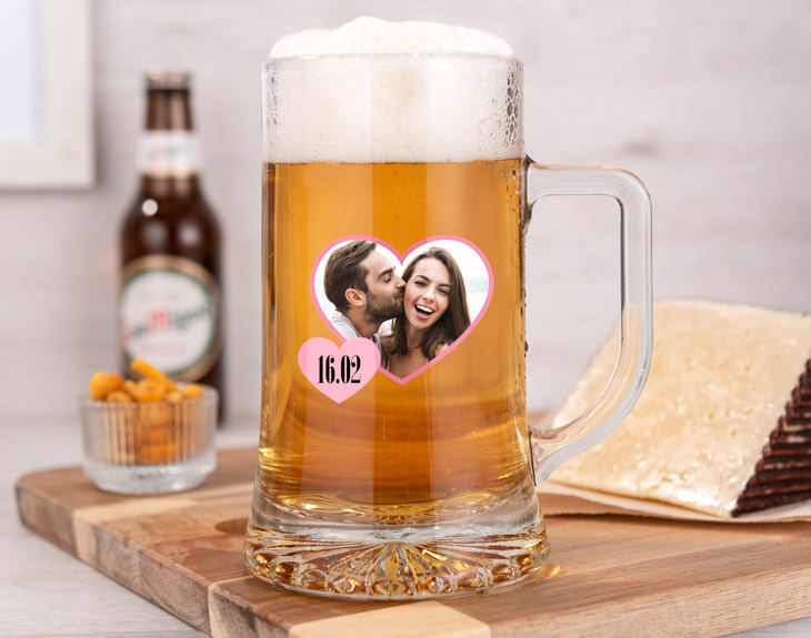 El amor es lo único que necesitamos en muchos momentos. Incluso en esos instantes en los que no podemos más con los diferentes factores de nuestra vida, el amor que sentimos por esa persona especial es nuestra salvación. Y es que seguro que, desde que conociste a tu pareja, tu vida ha cambiado por completo. ¡Muchas veces el amor es lo único que requerimos para ser felices! Seguro que recuerdas a la perfección cómo fue tu primer encuentro con tu pareja. Vuestras miradas se cruzaron en un momento dado y, de repente, todo había cambiado para vosotros. ¡Queremos que el amor de tu vida tenga una sorpresa única! Por ello contamos con esta jarra de cerveza personalizada, con la que podrás disfrutar de la cerveza y del amor todos los días de vuestra vida. Esta jarra de cerveza impresa en color cuenta con un diseño de lo más romántico, con el que podrás sorprender a tu amorcito en el momento oportuno. ¿Qué tienes que hacer para personalizar este regalo original? En el interior del diseñador encontrarás la plantilla: un corazón en el que podrás poner la foto que quieras. ¡Personalízalo a tu gusto y nosotros nos encargaremos de todo! Importante: esta copa no se puede meter en el lavavajillas. Diámetro interior: 7cm Medidas aproximadas: 8,5 x 15,5 cm
