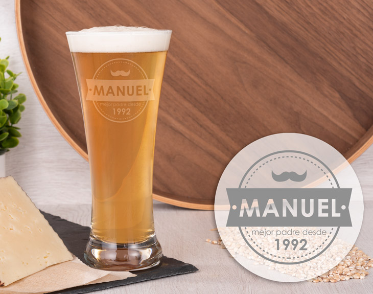 Está claro que tienes el mejor padre de todo el universo por miles de razones: te quiere, te cuida, es tu confidente, tu mejor amigo, tu mejor compañero de aventuras, tu maestro… y estás muy agradecido o agradecida de todo lo que ha hecho por ti. No hace falta que llegue su cumpleaños, ni si quiera el Día del Padre para que tengas este detalle con él. Esta jarra de cerveza personalizada estilo weizen es el detalle perfecto para él, porque… ¿con quién disfruta más una cerveza que contigo? Además, el mensaje que lleva grabado esta jarra es para morir de amor. Esta jarra tiene una capacidad de 30 cl, un perímetro de 22,5 cm en su parte más ancha y una altura de 20 cm.
