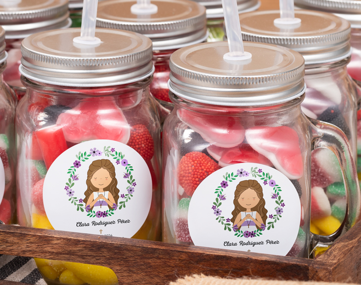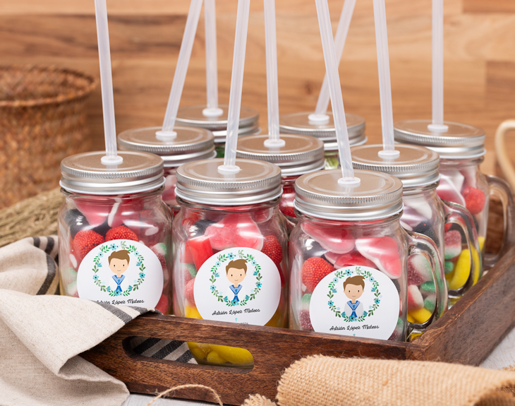 ¡La época de las Comuniones ya está aquí! Si este año le toca al más peque le toca hacer su Primera Comunión, tenemos el detalle perfecto para que siempre se acuerde de este día tan especial. Se trata de nuestra jarra de smoothie rellena de chuches personalizada con diseño "Flores de comunión". ¡Es genial! ¿Acaso hay algo que les guste más a los peques que las chuches? ¡Está claro que no! Por eso, esta jarra será ideal para sorprender a los invitados. Lo mejor es que es personalizable. ¡Podrás poner el lugar y el nombre del protagonista de este día! No dejará indiferente a nadie este regalo tan único. Personalizar este smoothie es súper sencillo. El primer paso a seguir consiste en añadir el producto al carrito y entrar al área de personalización. Una vez ahí, ya puedes escribir lo que tú quieras. Pronto estará perfecto y listo para regalar. ¡Será un regalo original para comuniones! ¡IMPORTANTE! Los tapones para la jarra pueden ser diferentes. Te llegará a casa uno ideal para ti, pero no podrás elegirlo, ¡es sorpresa! Importante: - Esta jarra no se puede meter en el lavavajillas. - Si puedes tener reacción a cualquier tipo de alérgenos, puedes escribirnos para consultar si hay alguna opción alternativa.