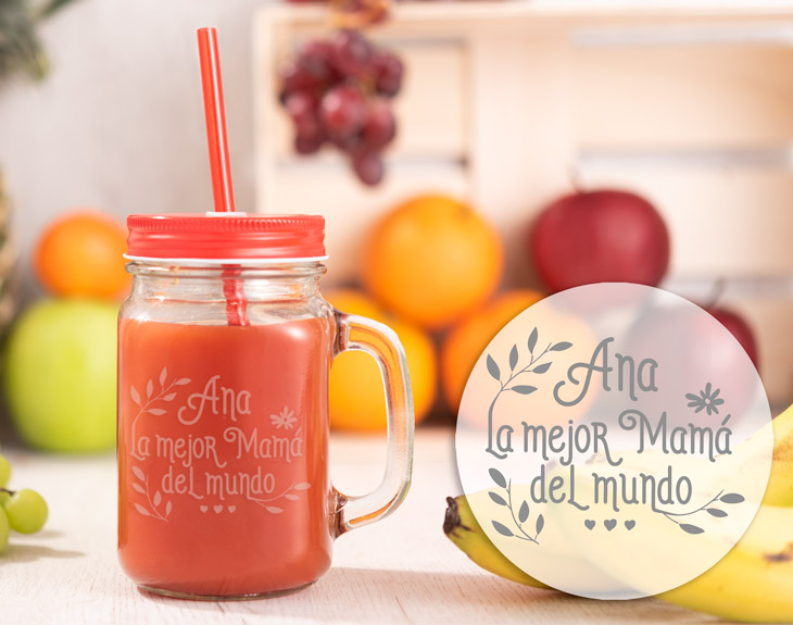 ¿Tienes a la madre más saludable de todas? Si le encanta comer sanísimo y hacer un montón de deporte, esta jarra de smoothies personalizada está hecha para ella. Y es que así podrá tomarse ahí todos sus batidos de frutas y verduras. Solamente tienes que decirnos su nombre para insertarlo en el diseño y conseguirás que se muera de ilusión al verlo. Y es que, a veces no decimos lo suficiente a nuestras madres lo importantes que son y lo muchísimo que las queremos, por eso este detalle tan original y práctico es una gran manera de hacerlo. Además, así sentirá un plus de motivación para seguir cuidándose como lo ha hecho hasta ahora. ¡Seguro que está deseando innovar y probar nuevas recetas de zumos para tomárselos en su jarra preferida! Importante: los tapones para la jarra pueden ser diferentes. Te llegará a casa uno ideal para ti, pero no podrás elegirlo, ¡es sorpresa!