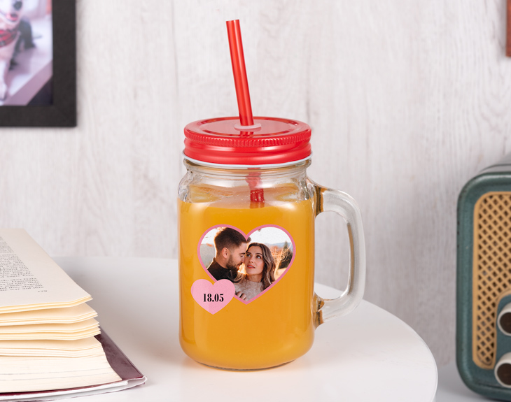 Los mejores momentos que has vivido con tu pareja son aquellos en los que has sentido que el tiempo se paraba. Ese sentimiento que sientes cada vez que ves a la persona que quieres es indescriptible, esas mariposas en el estómago que aparecen cuando vuelves a mirar a los ojos al amor de tu vida. Eso es algo único e incomparable con cualquier otro sentimiento. Y es que seguro que recuerdas esa primera cita con tu pareja, con la persona que llena tu vida de luz. Puede que tomaseis un delicioso batido en pleno verano, algo que os refrescara el cuerpo en una de esas calurosas tardes de verano. ¡Queremos que reviváis al completo ese momento, por lo que tenemos para vosotros un producto hecho a la perfección para este momento: una jarra para smoothies personalizada os vendrá de perlas para compartir algo fresquito este verano. ¡Esta jarra de batidos impresa para parejas es perfecta para hacer un plan romántico! Este producto está hecho para las mejores parejas. ¿Cómo puedes personalizar este regalo original para tu amorcito? Escoge vuestra foto más bonita y romántica. Entra en el diseñador y súbela al sistema. ¡Después solo tendrás que personalizar el diseño con la foto y el texto que quieras! ¡IMPORTANTE! Los tapones para la jarra pueden ser diferentes. Te llegará a casa uno ideal para ti, pero no podrás elegirlo, ¡es sorpresa! Importante: esta jarra no se puede meter en el lavavajillas.