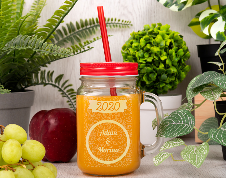 ¿Quieres impresionar a tu pareja? Hazlo de la manera más romántica y original del mundo: regálale esta jarra para smoothies para parejas. Seguro que alguna vez os habéis comprado un helado y habéis ido a pasear por la ciudad en un plan romántico. Ahora tenéis la oportunidad de hacer lo mismo pero con unos smoothies preparados en casa para disfrutarlos en una jarra con vuestros nombres. El diseño está incluido. Importante: los tapones para la jarra pueden ser diferentes. Te llegará a casa uno ideal para ti, pero no podrás elegirlo, ¡es sorpresa!