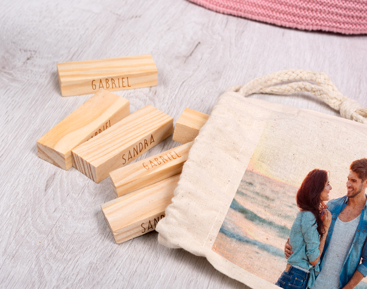 • Jenga grabada. • Bolsita para las piezas (sin personalizar o personalizada) • Tarjeta recordatoria.