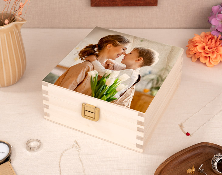¡Los accesorios son parte de nuestro día a día! Anillos, pulseras, collares o pendientes marcan la personalidad y el estilo de las personas. Por eso, si eres de los que usan estos complementos cuando salen a la calle y luego quieren guardarlos en un sitio seguro cuando llegan a casa, necesitas este joyero de madera personalizado con tapa. Es perfecto para colocarlo en cualquier rinconcito de casa y tenerlo siempre a mano para dejar tus joyitas cuando quieras. Es importante mantener nuestras joyas bien guardadas para evitar que se puedan estropear. Este original joyero de madera puede ser el regalo perfecto para ocasiones tan especiales como un cumpleaños, el Día de la Madre, vuestro aniversario o el amigo invisible. Hecho de madera, este joyero cuenta con una tapa y con cuatro compartimentos en su interior que servirán para que puedas separar todas tus joyitas y tenerlas siempre bien ordenadas y protegidas. ¡Es el joyero perfecto! Pero sin duda lo mejor de este producto es que podrás personalizar la tapa de este joyero. Añádelo al carrito, entra en el apartado de personalización y crea el diseño que tú quieras. Deja volar tu imaginación porque podrás añadir tu foto favorita, el texto que quieras, combinar imagen y texto e incluso añadir stickers. ¡No hay un joyero mejor que este! Medidas de la caja: 16 x 16 x 8 cm. (Largo x Ancho x Alto) Medidas de cada compartimento: 7 x 7 cm. Importante: Las maderas tienen vetas y estas quedan reflejadas en la imagen.
