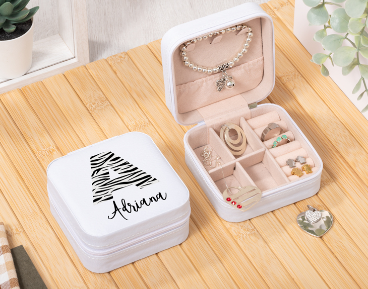 Las joyas son el complemento perfecto para completar cada día nuestros looks, porque por muy sencillo que sea, con unos anillos, alguna pulsera y tus pendientes favoritos, ya te ves de otra manera. Por eso, si conoces a esa persona que no puede vivir sin sus joyas, tenemos el regalo perfecto y es... ¡este joyero portátil personalizado tan chulo! Es ideal porque podrá utilizarlo tanto en casa como cuando se vaya de viaje porque tiene el tamaño perfecto para una maleta o una mochila. ¡Es lo más! Un cumpleaños, el Día de la Madre, el amigo invisible... Cualquier fecha es buena para triunfar con este original regalo que dejará sin palabras a quien lo reciba porque es genial. Dentro de él, podrás guardar anillos, collares, pendientes y todo lo que quieras. Tiene varios compartimentos para cada tipo de joya y además, todo irá muy bien protegido y cerrado gracias a su cremallera. Pero para que sea el regalo más guay del mundo, tendrás que personalizar este joyero. Añade el producto al carrito y entra en el área de personalización. Si te gusta el 'Animal Print' este diseño está hecho para ti. Elige la inicial que quieras con el estampado que más te guste y termina el diseño con el nombre de la persona que vaya a recibir este regalo. Es perfecto para sacar su lado más salvaje. ¡Le encantará! Medidas del joyero: 10 x 10 x 5 centímetros. Material: Piel sintética.