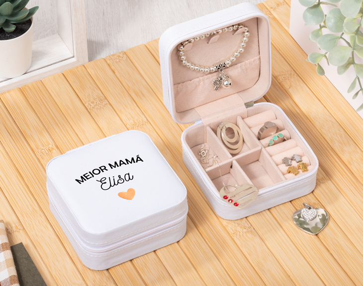 • Joyero portátil pequeño personalizado. • Tarjeta Recordatoria.