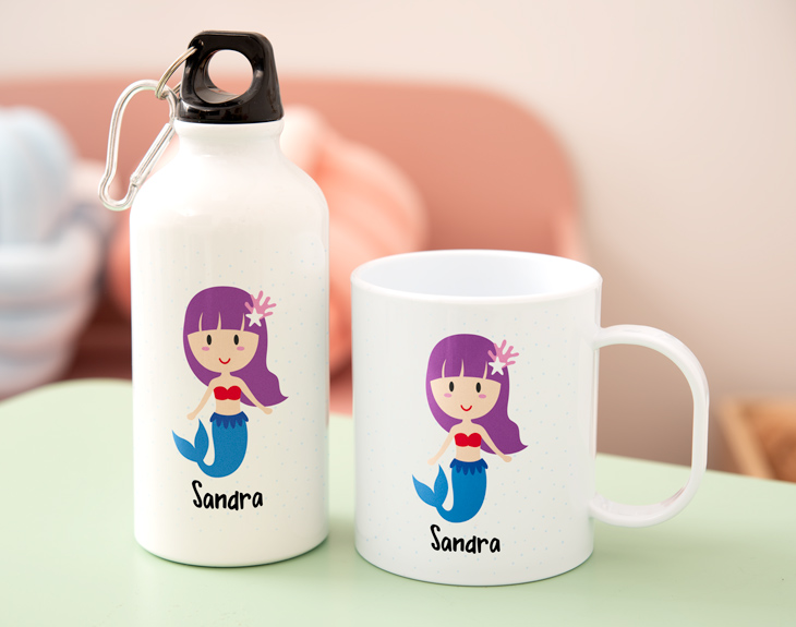 A la hora de ir al colegio, todos los niños tienen que ir lo mejor equipados posible. ¡No puede faltar nada en su mochila! Los cuadernos, el estuche con todos los lápices, el sandwich... ¡Solo nos falta el agua! Eso es algo que no puede faltar en el día a día de cualquier estudiante. Para todos esos niños que necesitan hidratarse en todo momento contamos con este kit de botella y taza de plástico personalizada. ¡Está hecho para ellos! Este kit con botella y taza infantil con diseño de sirena está hecho para todos los peques a los que les encantan las sirenas y el mundo más acuático. Por un lado la botella está hecha de aluminio, y cuenta con una capacidad de 400 mililitros y una altura de 17 centímetros. ¡Podrá llevarla a todos lados cuando más lo necesite! Por otro lado, la taza está hecha de plástico (libre de BPA), y cuenta con una capacidad de 330 mililitros. ¡Es el kit perfecto para los más pequeños de la casa! Este regalo original para la vuelta al cole no solo les será de gran utilidad en el día a día de las clases. Además, cuenta con un diseño de sirena hecho para todos los que siempre han querido ser Ariel en su vida diaria. ¿Cómo podrás hacerte con este acuático pack? Añade el producto al carrito y personaliza ambos productos. Te será de lo más fácil: ¡Solo tendrás que escribir su nombre en ambos diseños! Importante: El plástico de la taza no contiene BPA. Capacidad de la taza: 33 cl. Capacidad de la cantimplora: 400 ml. Medida de la cantimplora: 17 cm. Esta taza es apta para lavavajillas y microondas.