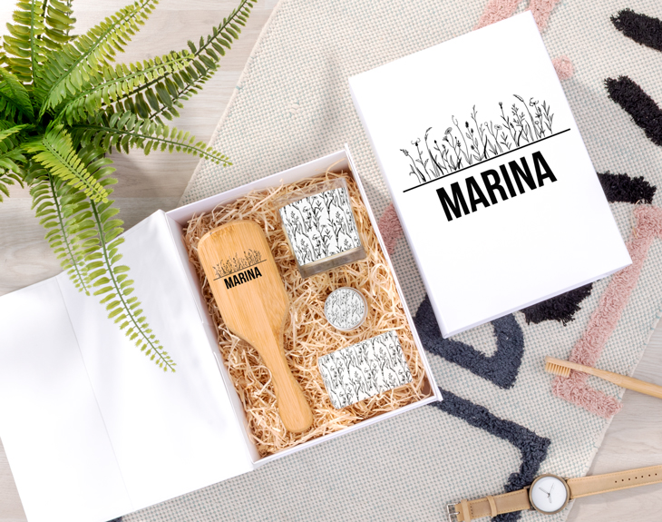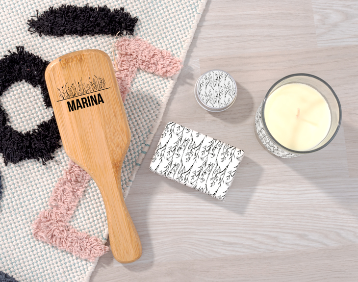 Todos nos merecemos nuestro momento de relax tras un día agotador. Madres, padres, profesores, parejas, amigos... ¿Quién no querría estar lo más relajado posible en el sofá de su casa? Este kit de cuidado personalizado está pensado para desconectar del mundo exterior y asearte de la mejor forma posible. En este kit especial de higiene y cuidado con diseño floral encontrarás todo lo que cualquier persona necesita para su ratito de autocuidado personal. Esta caja negra con cierre magnético cuenta en su interior con cuatro productos que serán de lo más útiles: un cepillo de bambú personalizado, un bálsamo labial, una vela con tapón y un jabón aromático. ¡Tanto el jabón como la vela cuentan con aroma surtido! ¿Quieres sorprender al mejor profe del mundo con un regalo original como este? ¿O tal vez a esa madre que necesita un ratito de relax? ¡Podrás personalizar este kit con el nombre o texto que quieras! Este aparecerá debajo del dibujo de flores que encontrarás en el diseño. Añade el producto al carrito y entra en el área de personalización para personalizar tanto la caja como el cepillo. Medidas de la caja: 25 x 18 x 11 cm. Importante: tanto el olor de la vela como el de jabón es SURTIDO.