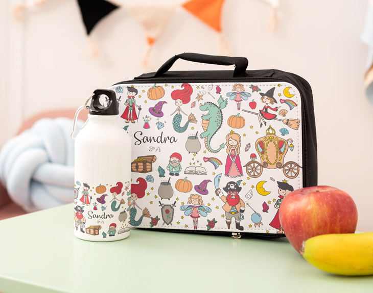 A nadie le gusta tener que comer fuera de casa pero, si estamos obligados a ello, qué mejor que hacerlo con todo lujo de detalles. Esto es mucho más importante cuando hablamos de los más pequeños y, para ellos, hemos creado el Kit para merienda "Cuento Mágico" personalizado. Un completo pack de botella y lunchera personalizadas con su nombre y curso, y que es perfecto para recuperar energías a media mañana o en la hora de la merienda.