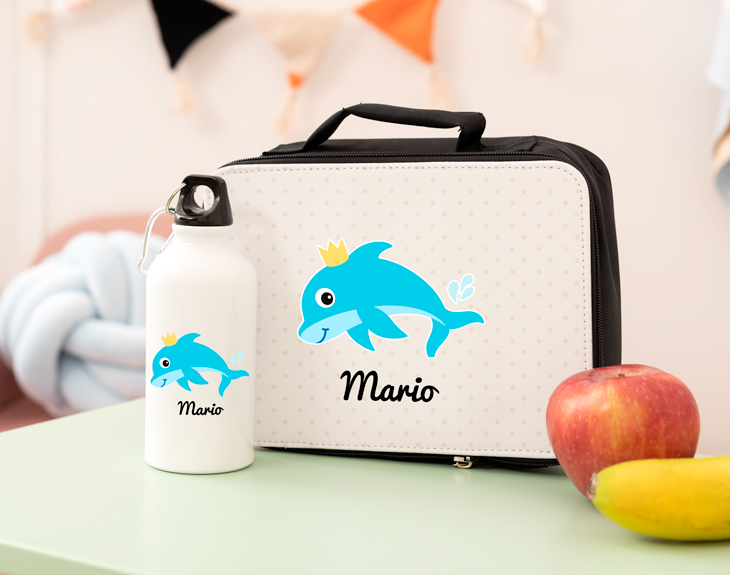 Si tu hijo adora el mar y sus profundidades y cada vez que vais a la playa se pasa horas y horas en el mar jugando, sin duda, esto es para él. Ahora que llega la vuelta al cole, si quieres tener un detalle con él para animarle con su nueva rutina, este kit escolar es el regalo perfecto. Tiene varios estampados con animales acuáticos, puedes elegir entre un delfín, un tiburón o una ballena, el que más le guste a tu hijo. ¡Le dejará sin palabras! Estará deseando que lleguen las clases para poder presumir de estuche en clase. Con este kit irá súper bien preparado para vuelta al cole. Contiene una lunchera para guardar la comida y llevar la merienda o el almuerzo al colegio. Y, también viene incluido una cantimplora de agua. Este kit es perfecto para llevar a las excursiones, a las mañanas escolares o a las actividades extraescolares. ¡Será la envidia de la toda la clase! Pero lo más especial de todo es que es personalizable. Tú puedes escribir el nombre que tú quieras, así no tendrás que preocuparte por si pierde algo o se confunda, porque… ¡no habrá otro kit igual! Para personalizarlo, lo primero es añadir el producto al carrito y entrar al área de personalización. Medidas: 24 x 8 x 7 cm.