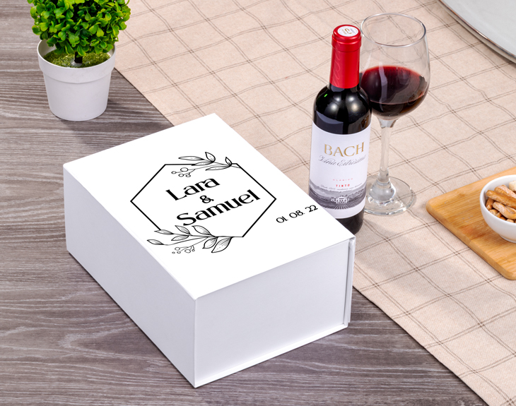 ¿Estás pensando en sorprender a tu pareja con un regalo único? Si vuestro aniversario está a la vuelta de la esquina, no habrá sorpresa mayor que un kit premium con bebida personalizado como este, con un diseño hecho especialmente para parejas. ¡Podrá incluir la bebida que quieras entre las disponibles! No habrá nada como un kit especial con bebida a elegir y copa con diseño romántico como este. En el interior de esta caja de color negro con cierre imantado podrás encontrar la opción de bebida (más su respectiva copa) que más le guste al amor de tu vida: cerveza, cava o vino. ¡Escoge la opción que más le represente! Si no sabes con qué dejar con la boca abierta a tu amorcito en vuestro aniversario o en San Valentín, este regalo original para parejas es perfecto. Elige la bebida que quieras entre las disponibles y añádelo al carrito. Después solo tendrás que entrar en el área de personalización, escoger el diseño que más te guste y personalízalo con vuestros nombres. ¡Nosotros nos encargaremos de crear el mejor regalo para él o ella! Medidas de la caja: 25 x 18 x 11 cm.