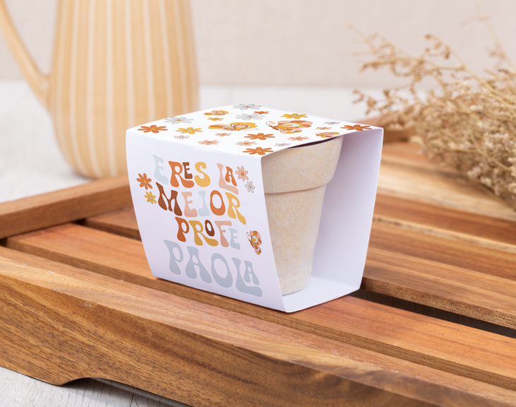 ¿Este año habéis tenido mucha suerte con vuestro profe? Si se preocupa un montón por sus alumnos y sus clases son geniales, tenemos el mejor regalo de fin de curso. Se trata de nuestro kit de semillas personalizado con diseño "Profe retro". Las semillas pueden ser de perejil o menta. ¡Son geniales! Este regalo es una forma de demostrar lo mucho que valoráis su paciencia y dedicación. ¡Se lo merece! Además, lo mejor que tiene es que es personalizable, podrás escribir el nombre del mejor profe de todos. Imagina la ilusión que le hará recibir este kit de semillas, sin duda, le encantará. ¡Así nunca se olvidará de su clase favorita! Personalizar este kit de semillas es muy sencillo. El primer paso a seguir consiste en añadir el producto al carrito y entrar al área de personalización. Una vez ahí, ya puedes escribir el nombre que tú quieras. Pronto estará perfecto y listo para regalar. ¡Será un original regalo para profes! Importante: Las semillas pueden ser de perejil o menta, varía según stock. Medidas: 6cm x 6cm