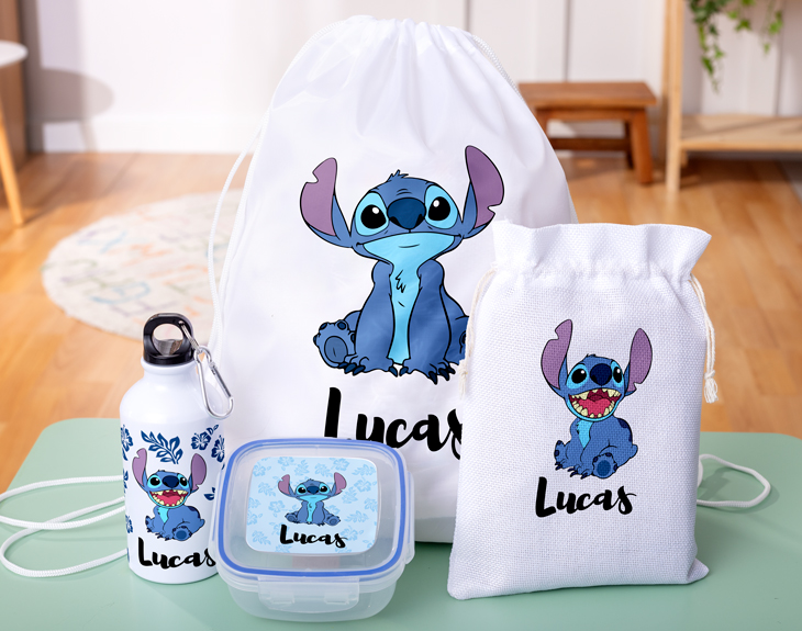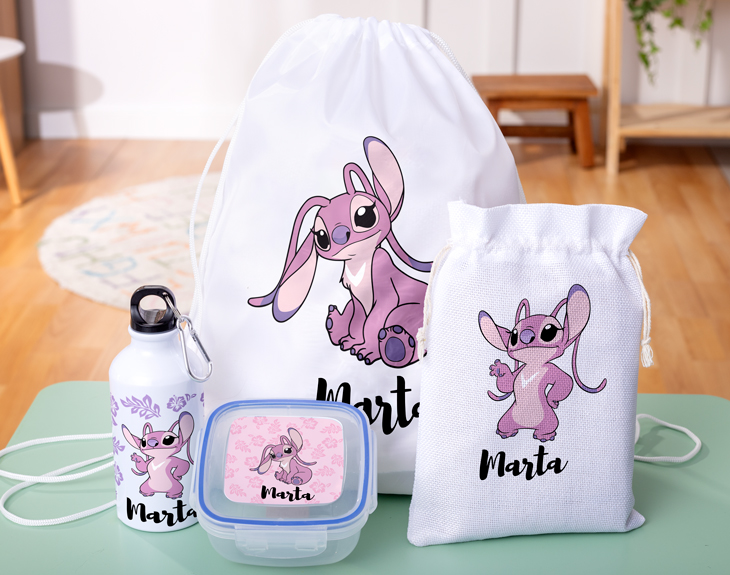 ¡La vuelta al cole ya está aquí! Ahora que el verano llega a su fin y empieza septiembre con las clases. Es el momento de reencontrarse con los compañeros de clase, los profes, ir a las actividades extraescolares y retomar la rutina. Si al más peque de la casa le da un poco de pena el fin del verano... ¡Tenemos el regalo perfecto para animarle con su día a día! Con nuestro pack personalizado para la vuelta al cole, volver a las clases será mucho más divertido. Tiene un estampado precioso de Stitch, el famoso personaje de Disney. Y lo mejor es que es personalizable, podrás escribir el nombre que tú quieras. ¡Quedará genial! Este pack incluye un túpper de plástico, una mochila de cuerdas, una cantimplora de agua y una mini bolsita de tela. ¡Es súper completo! Viene de maravilla para llevarlo a las clases y poder guardar el almuerzo y llevar agua de manera práctica y cómoda. Por último, personalizar este pack vuelta al cole es muy sencillo. El primer paso a seguir consiste en añadir el producto al carrito y entrar al área de personalización. Una vez ahí, ya puedes escribir el nombre que tú quieras. Pronto estará perfecto y listo para regalar. ¡Será un original regalo para la vuelta al cole! - Túpper: Medidas: 12,5 x 12,5 x 6,5 cm. Material: plástico transparente. - Cantimplora: Altura de la botella: 17 cm. Capacidad: 400 ml. Material: Aluminio. - Mochila de cuerdas: Medidas: 34,5 cm x 41 cm. Material: suave poliéster 210T - Bolsita de tela: Medidas: 25 x 17,5 cm.