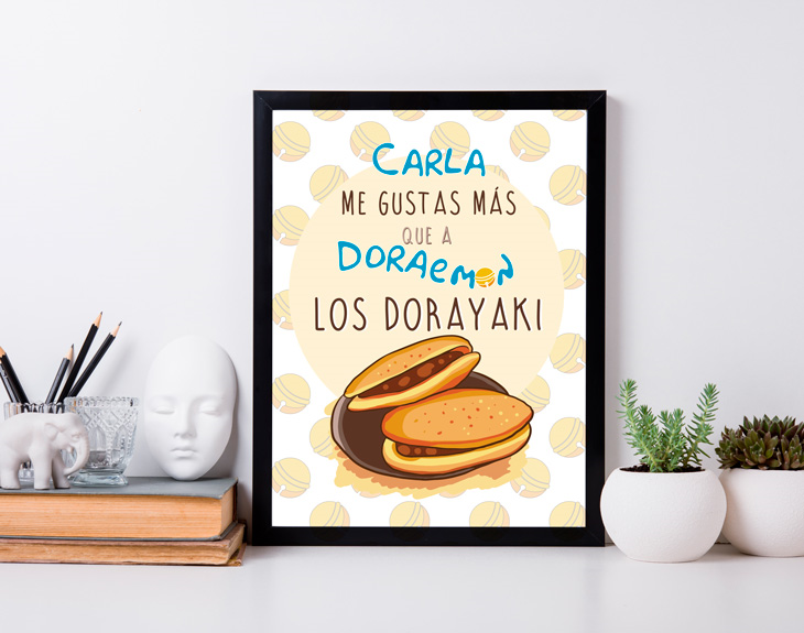 La lámina cuenta con un precioso diseño inspirado en los dibujos de Doraemon pero, lo más importante, es la preciosa frase que lo acompaña y que lo convierte en un regalo genial para parejas. Además, podremos personalizarlo con el nombre del destinatario o destinataria, por lo que, junto a su diseño, conseguimos un regalo único y muy especial.