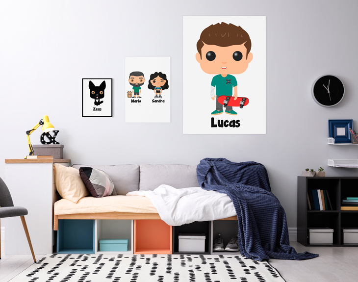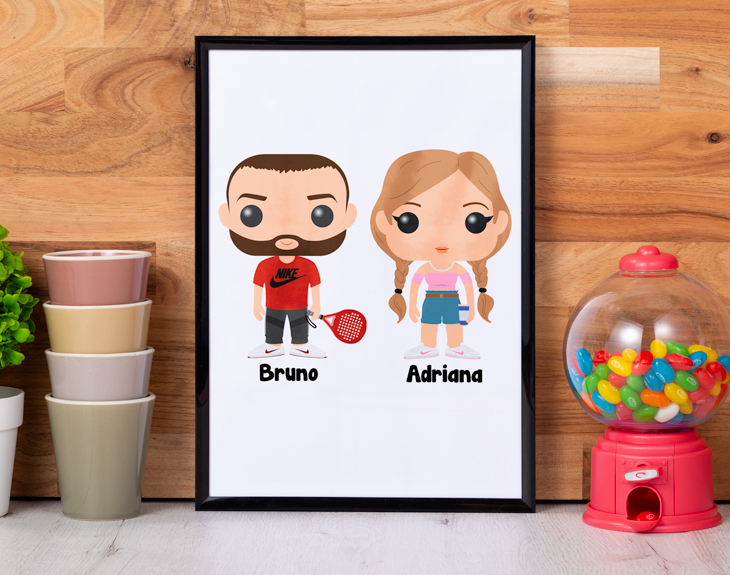 Los Tinoks han llegado a nuestra sociedad para quedarse. Hoy en día, son pocas las personas que no tienen uno de estos conocidísimos muñecos en tus manos, y aún menos la gente que no conoce el aspecto de estos juguetes tan monos y famosos. ¿Quién no ha soñado alguna vez con saber cómo sería su propio muñeco Tinok? Todos hemos tenido en la cabeza esa pregunta, incluso hemos querido tener uno propio en nuestras manos. ¿Tu mejor amigo es un aficionado de estas figuras tan chulas? ¿Tu familia tiene el salón repleto de Tinoks por todas las estanterías? Si quieres hacerle un regalo de lo más guay a ese friki de estos muñecos, esta lámina personalizada le convertirá en uno de ellos. Tenemos una variedad de personajes que hará que puedas elegir tu Tinok ideal, tu viva imagen en uno de estos muñecos. Si quieres hacer un regalo original de lo más singular para cualquier persona que haya en tu vida, una de estas láminas puede ser el detalle perfecto. Podrás elegir dos tamaños: A4 (que incluye marco) o de 60x85cm. Crea vuestro propio mundo Tinoks, decidnos vuestros nombres, y apareceréis en una de estas láminas. Importante: nuestro equipo de personalización se encargará de ajustar la distribución de los personajes en el producto en función de su tamaño para que se vean lo mejor posible. Importante: Si escoges la opción "versión digital" te enviaremos el diseño por mail en alta resolución. De esta manera, tendrá la calidad necesaria para que puedas imprimirla en cualquier formato. En el formulario de entrega tendrás que seleccionar la opción "Recibir por Email para ahorrar los gastos de envío". Importante: El color del marco puede variar según stock.